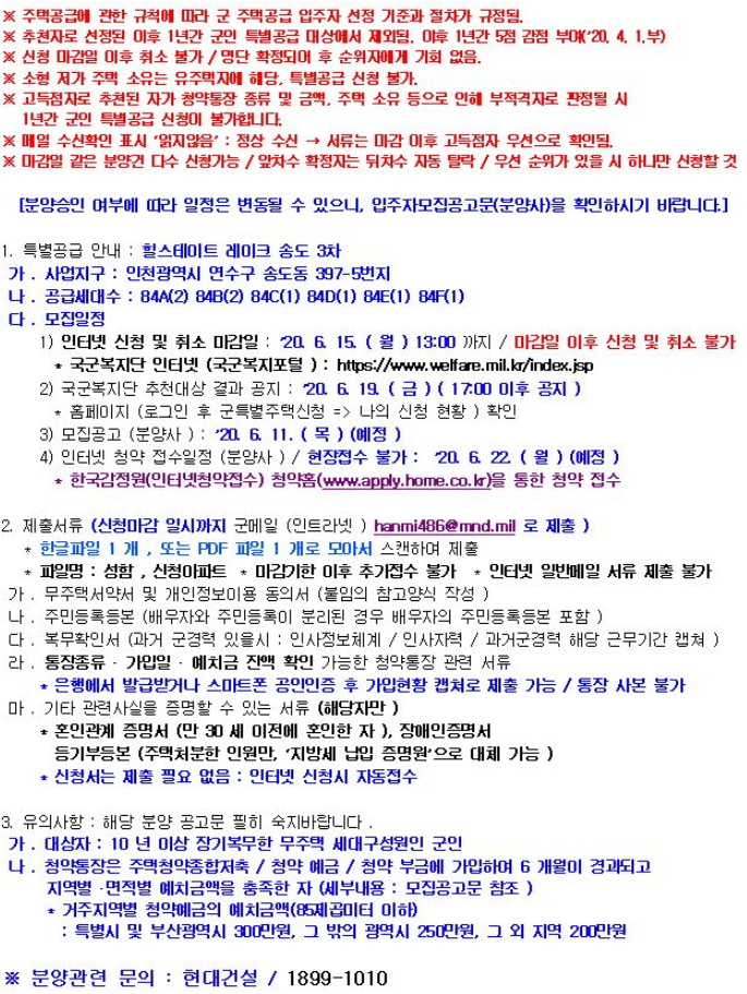 * 군인특별공급과 관련된 정보는 기존 포스팅을 참고바랍니다.