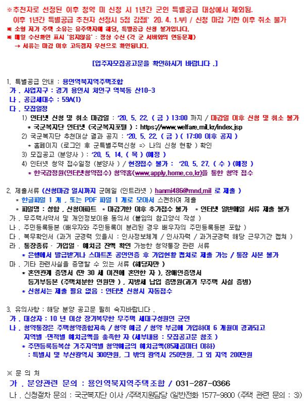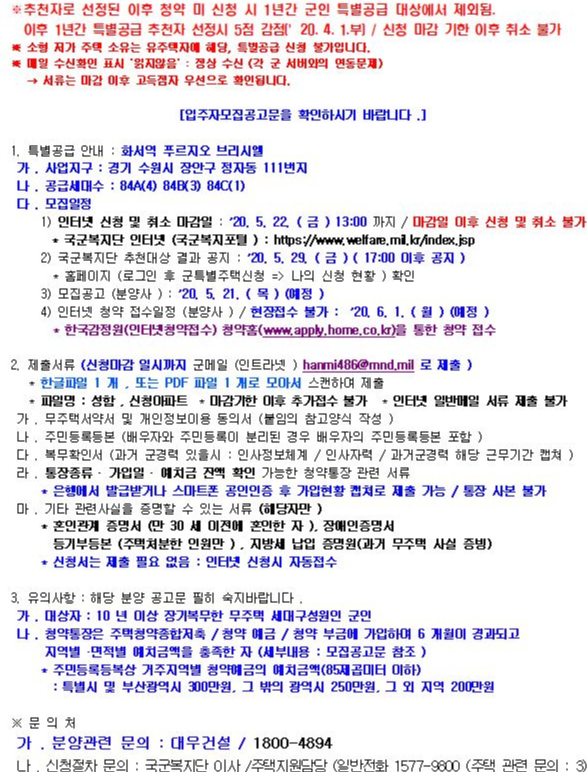 * 군인특별공급과 관련된 정보는 기존 포스팅을 참고바랍니다.