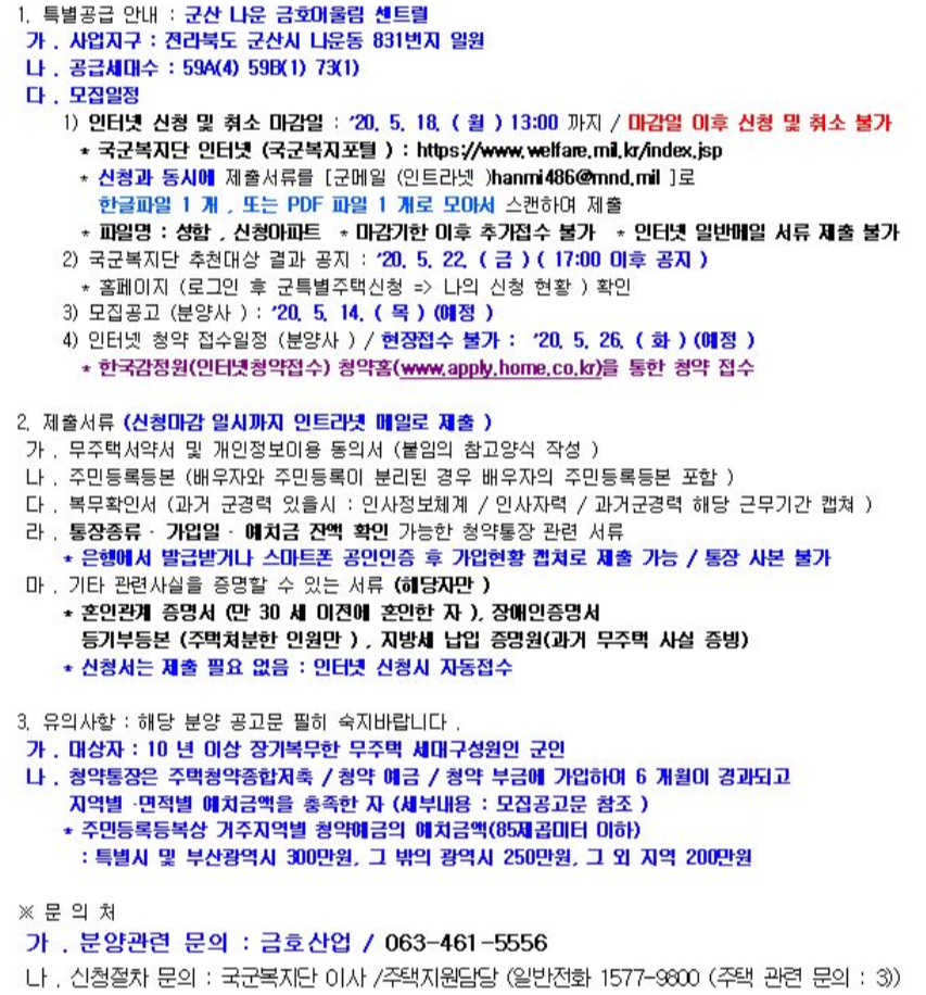 * 군인특별공급과 관련된 정보는 기존 포스팅을 참고바랍니다.