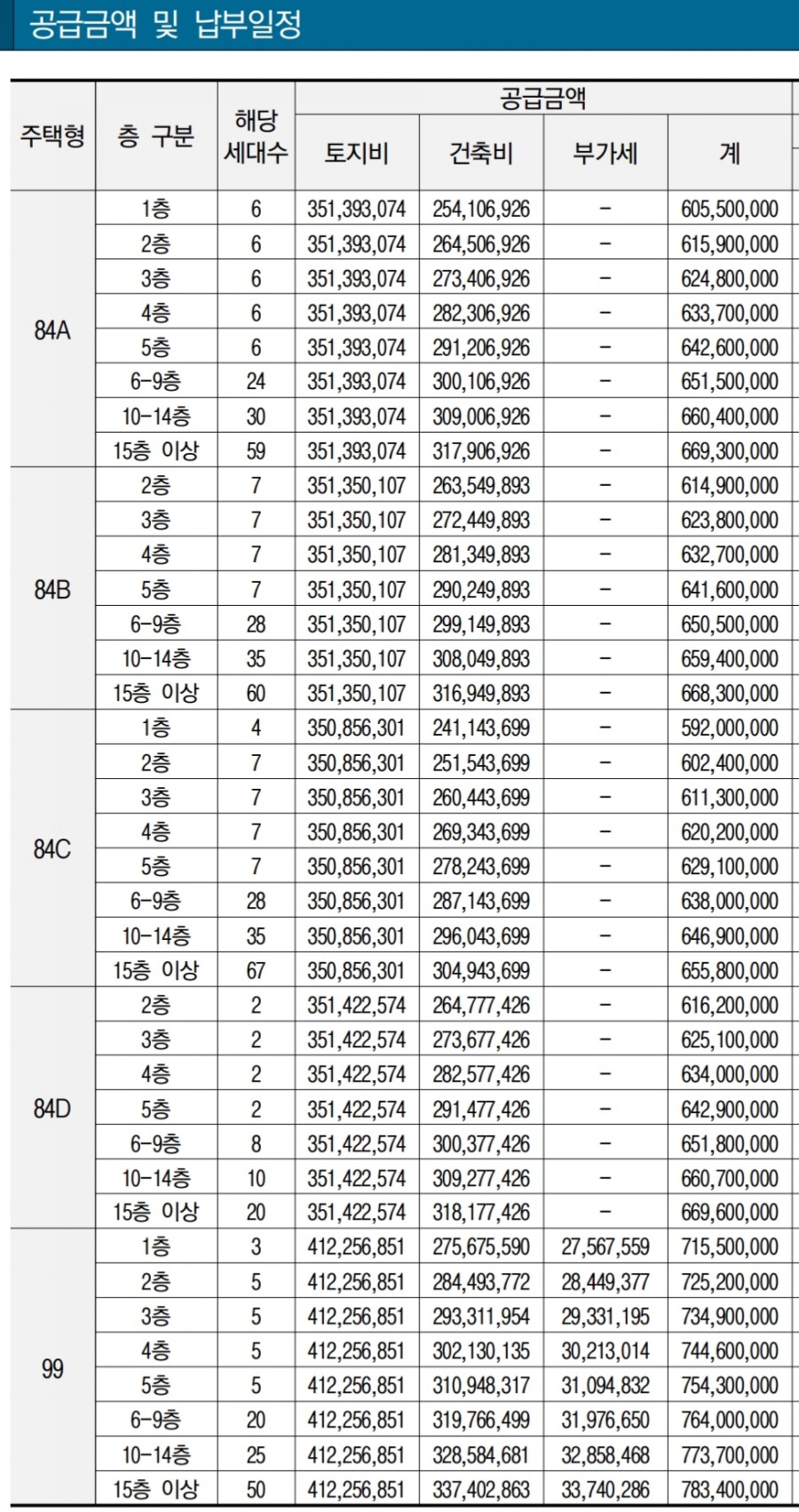 (1) 분양가 : 84기준 4억대 분양 예상됩니다. 1,200만원 예상됩니다.