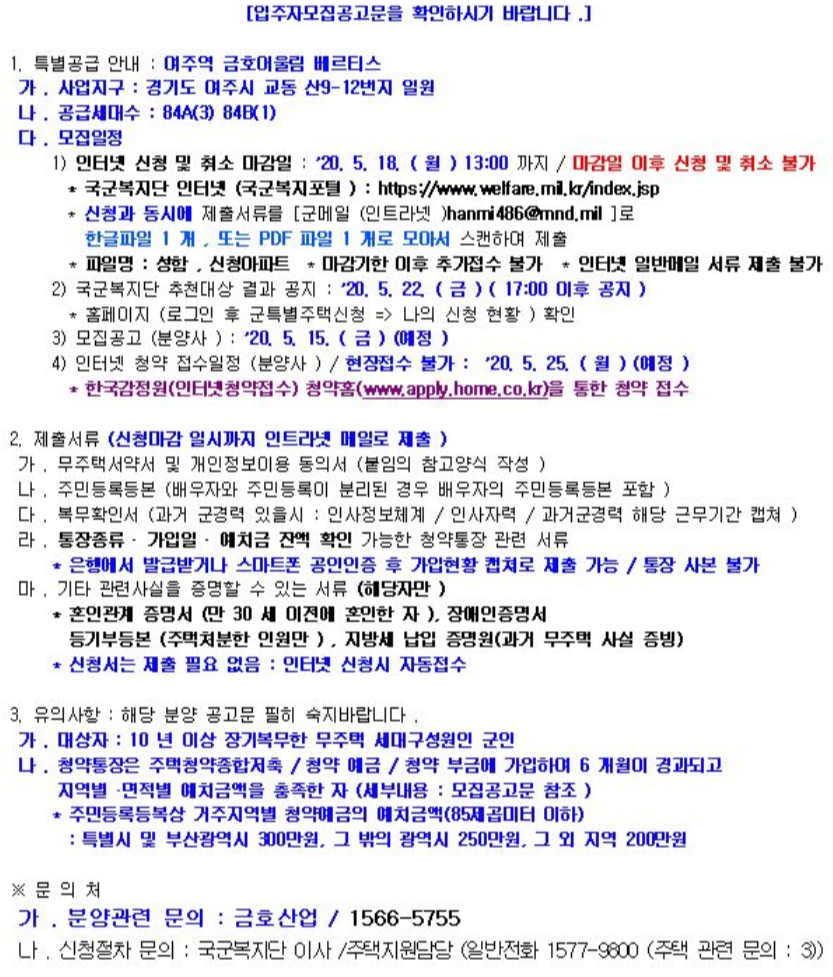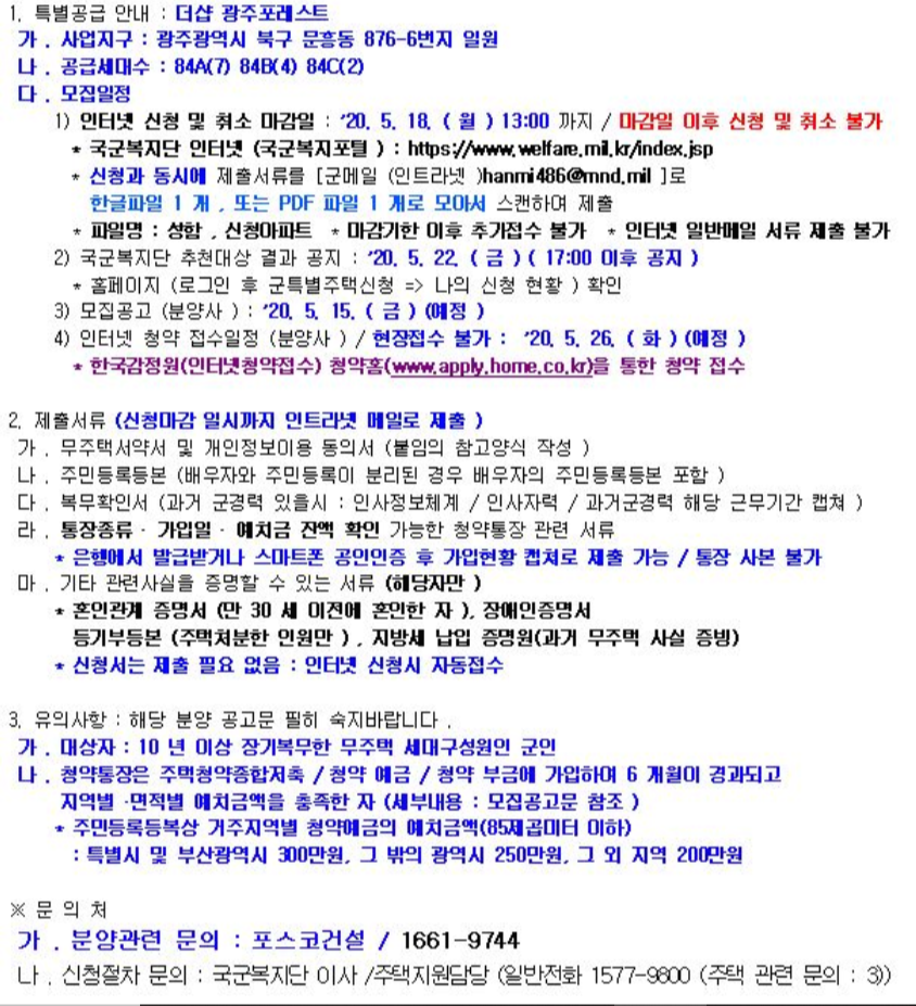 * 군인특별공급과 관련된 정보는 기존 포스팅을 참고바랍니다.