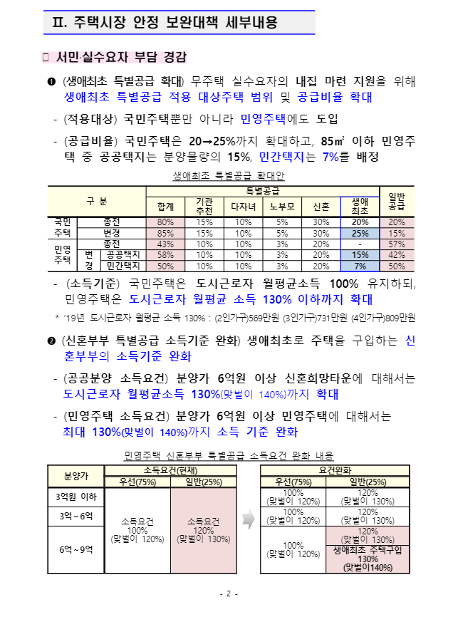(1) 생애최초 특별공급을 민영주택에도 도입하여 비율을 확대