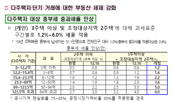 * 2주택 : 8% / 3주택이상 또는 법인 : 12%
