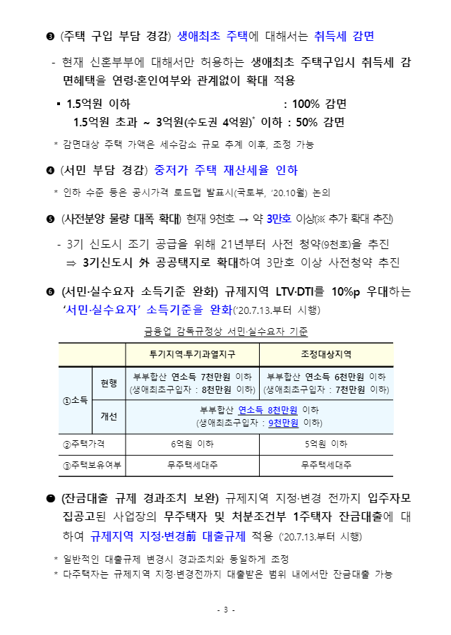 (4) 규제지역 LTV,DTI를 10%p우대하는 서민실수요자 소득기준 완화
