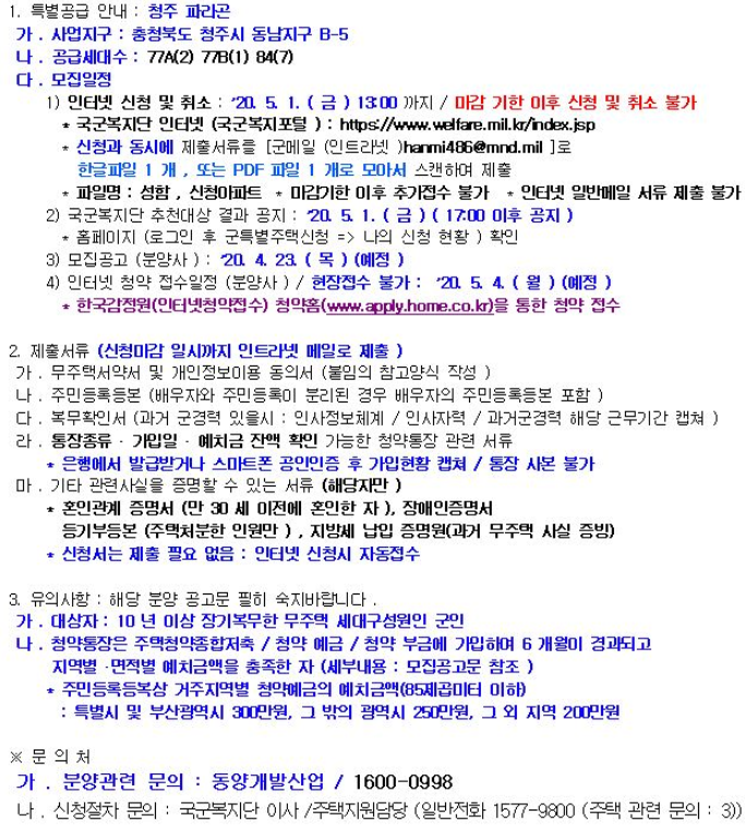 * 군인특별공급과 관련된 정보는 기존 포스팅을 참고바랍니다.