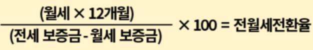 * 계산식= ((전세- 월세 보증금)* 전월세 전환율)/12