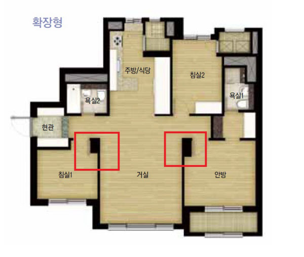 * 원래 발코니 확장은 불법이었습니다. 그러나 집을 넓게 쓸 수 있다는 크나큰 장점 때문에 수많은 사람들이 불법을 저지르자 정부는 2005년 건축법을 개정해 발코니 확장을 합법화했습니다. '발코니 등의 구조변경절차 및 설치기준' 참조