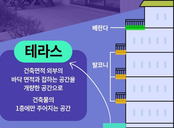안녕하세요? 부자아빠의 부동산연구소입니다. 어제는 면적과 관련된 내용들을 정리해 보았는데요, 오늘은 베란다와 발코니 그리고 테라스에 대해 정리해보려고 합니다.