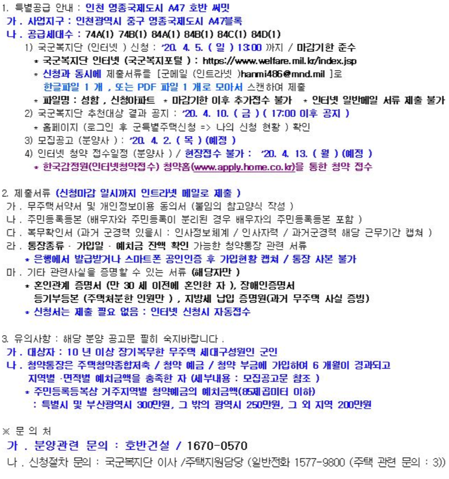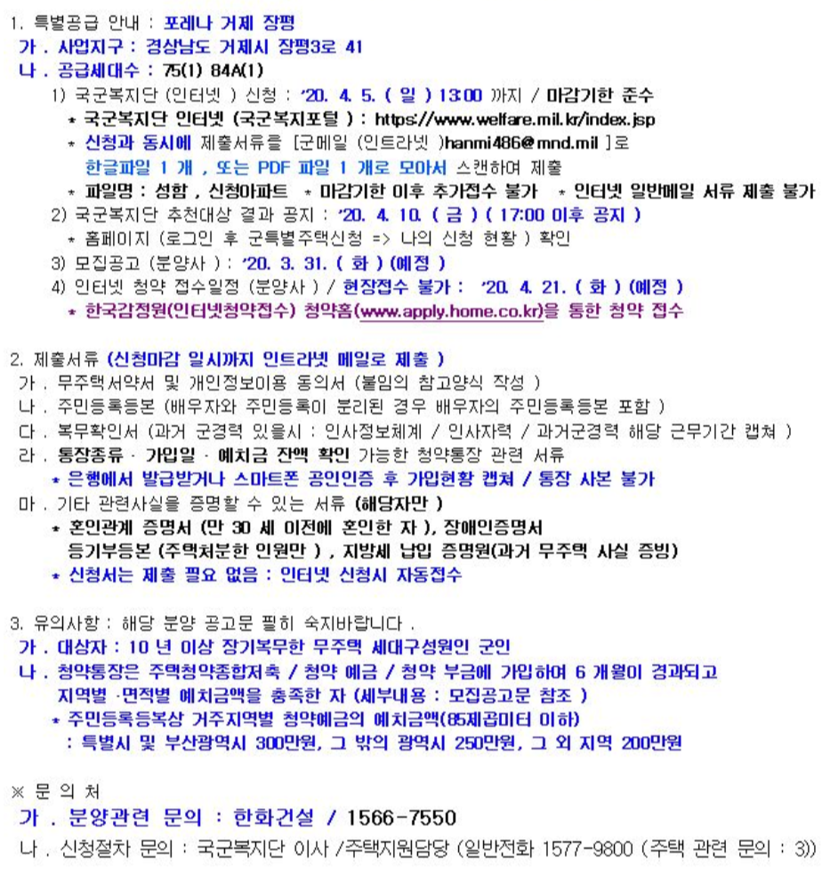 * 군인 특별공급과 관련된 정보는 기존 포스팅을 참고 바랍니다.