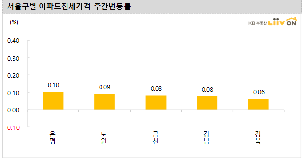 - 서울(0.03%)은 전주대비 소폭 상승했는데요, 은평구(0.10%), 노원구(0.09%), 금천구(0.08%), 강남구(0.08%)가 소폭 상승했습니다.