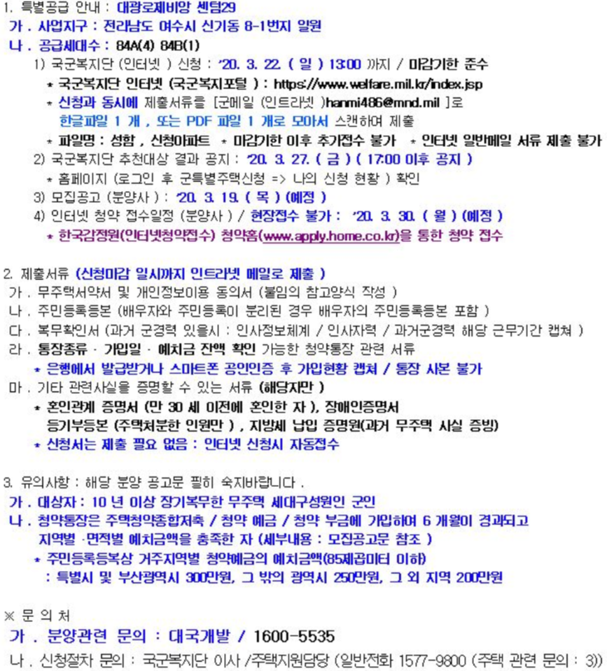 * 군인 특별공급과 관련된 정보는 기존 포스팅을 참고 바랍니다.