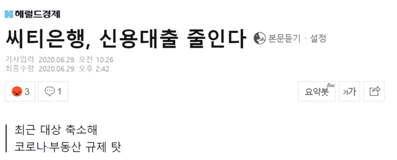 위의 기사에서 보듯 신용대출을 공격적으로 해주는 외국계은행들이 대상과 한도를 축소하며 몸사리기에 나서고 있는 상태입니다.