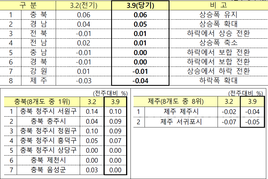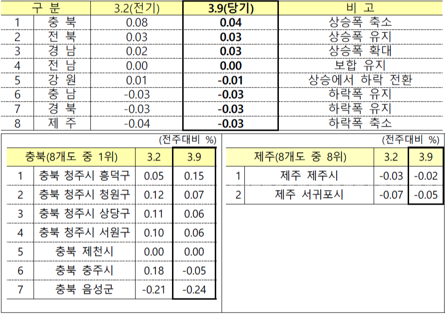 - 그 외 8개도(0.01%->0.00%)는 보합으로 전환되었습니다.